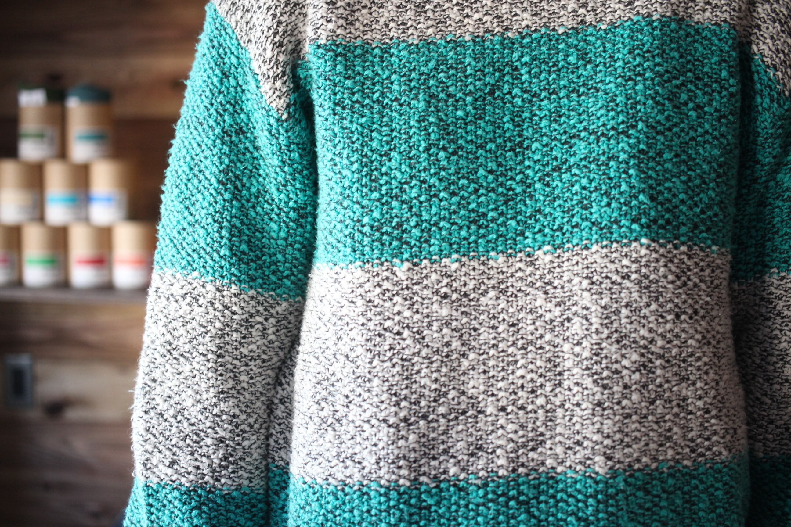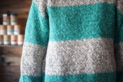 生成り、ミントグリーン系のボーダーニットです
